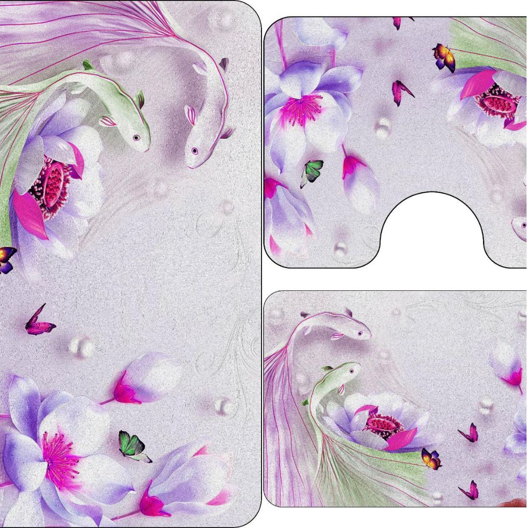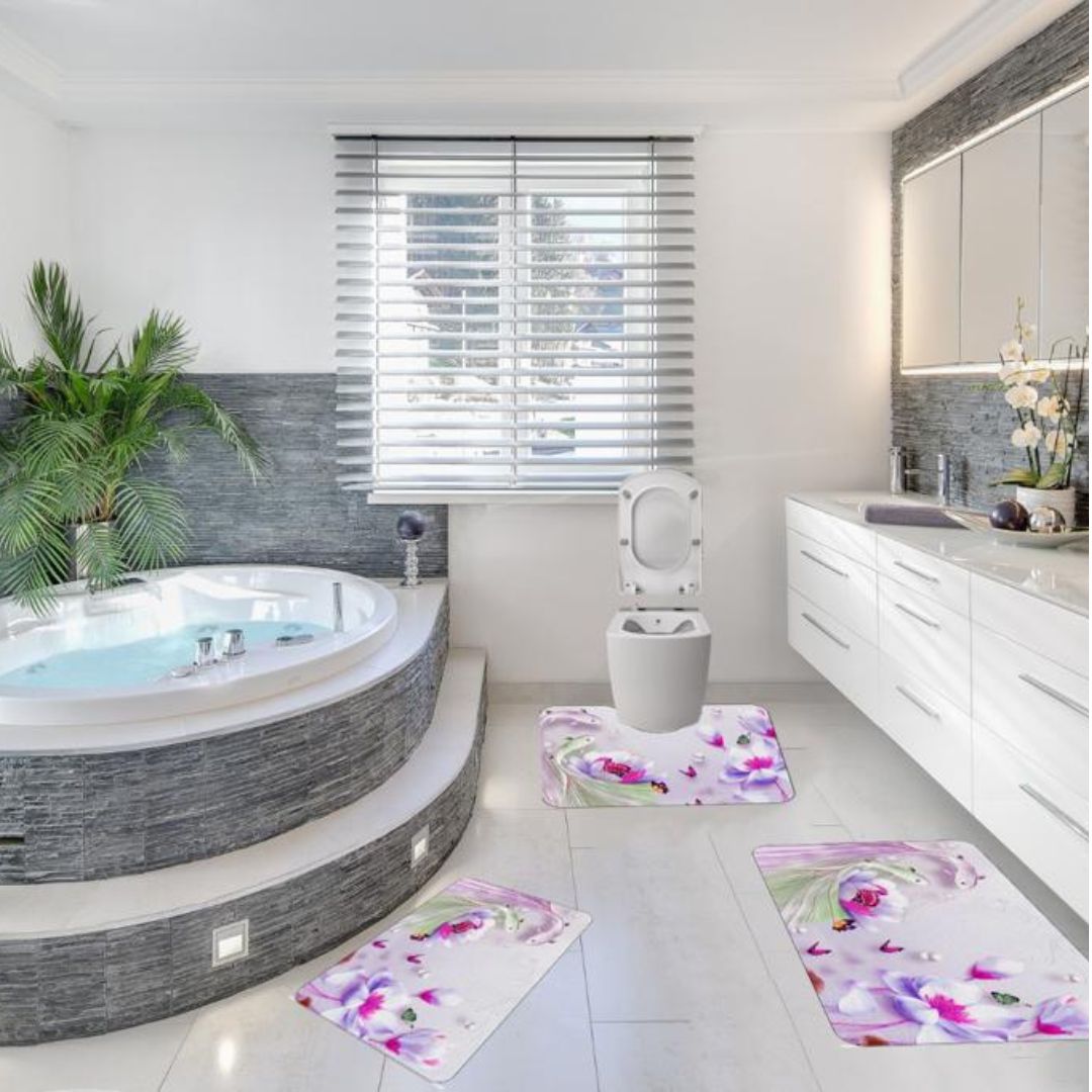 Covorase de baie, 3 piese, 3D, Antiderapante | 0008-M