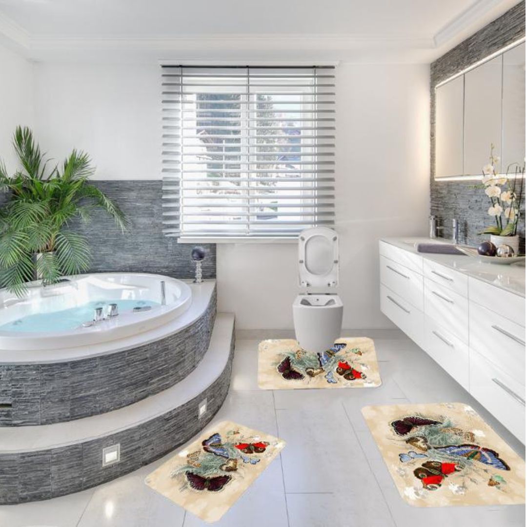 Covorase de baie, 3 piese, 3D, Antiderapante | 0012-M