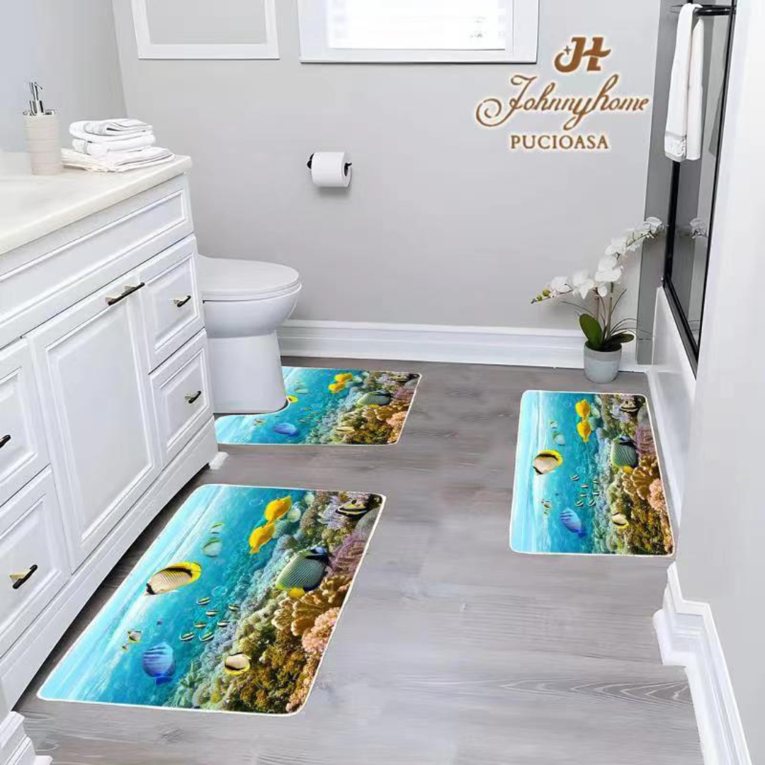 Covorase de baie, 3 piese, 3D, Antiderapante | 0783-SI