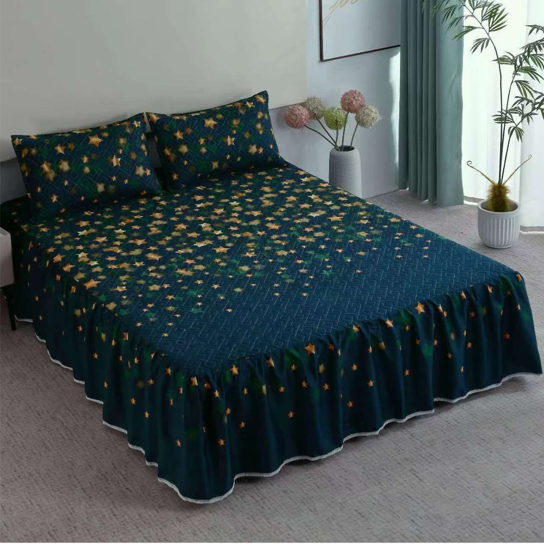 Cuvertura de Pat din Bumbac Finet cu Volanase – Set 3 Piese | Eleganta si Confort in Stil Romantic | COD 0102-TL