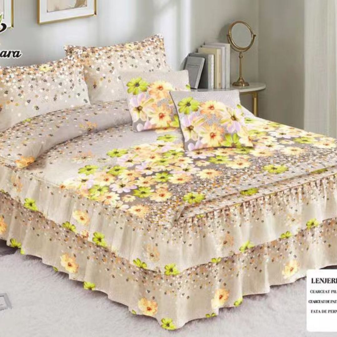 Lenjerie de pat bumbac finet cu volanas – 6 piese | 0067-PR