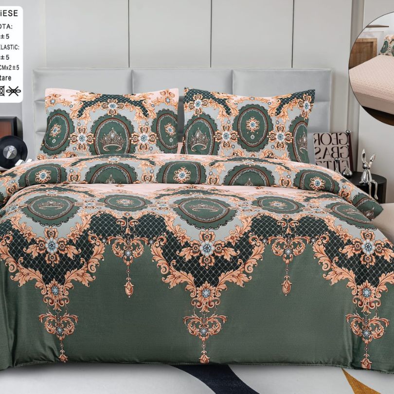 Această lenjerie pentru pat dublu cu 4 piese are un design modern raportat la tendintele actuale ale pietei, iar culorile intense reprezinta alegerea perfecta pentru esteticul reusit al dormitoritorului dumneavoastra. Imbraca-ti dormitorul cu aceasta lenjerie superba!
