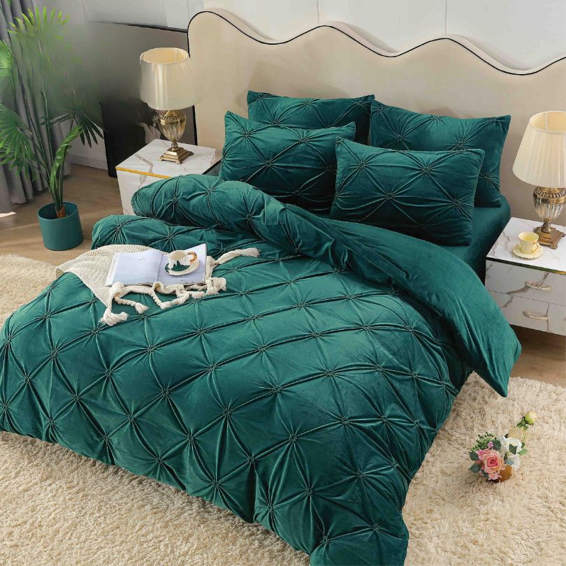 Lenjerie de Pat Catifea cu Elastic – Set 4 Piese pentru Eleganta si Confort Desavarsit | COD 0891-J
