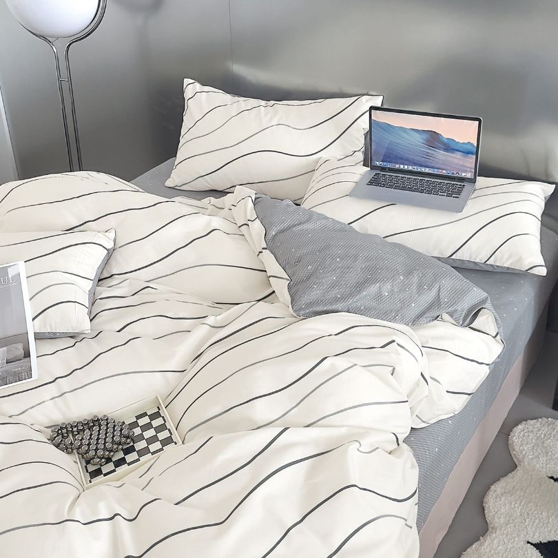 Lenjerie de Pat din Bumbac 100% cu Elastic – Set 4 Piese | COD 0108-PR