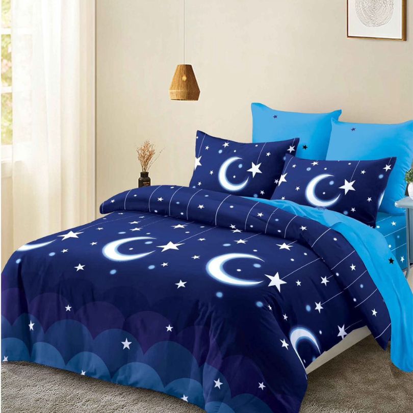 Set complet: 6 piese – cearceaf de pat cu elastic, cearceaf pentru pilotă și 4 fețe de pernă
