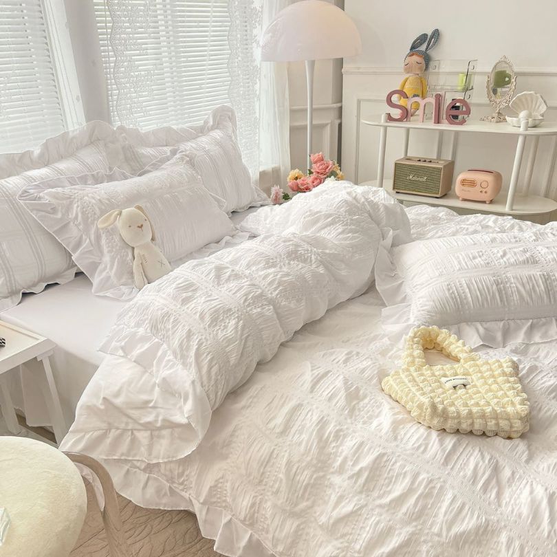 Transformă-ți dormitorul într-un spațiu de relaxare și rafinament cu această lenjerie de pat din finet creponat, 6 piese, perfectă pentru orice sezon. Realizată din materiale de înaltă calitate, lenjeria oferă un confort deosebit și o rezistență îndelungată la spălări repetate.