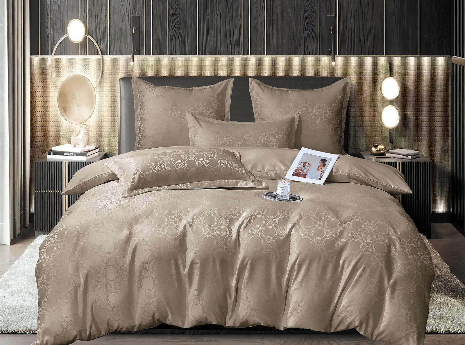 Lenjeria pentru pat tip Jacquard este intruchiparea rafinamentului, fiind o lenjerie de lux, cu broderie si materiale foarte bine alese ( Bumbac 100% Damasc ). Aceasta lenjerie Jacquard este moderna si rafinata, aducand o lumina noua oricarui tip de locuinta, iar aspectul boem si confortabil al acestei lenjerii este dat de broderia superba si de tesaturile fine, cu luciu, placute la atingere. Lenjeria de pat Jacquard este ideala pentru a conferi o nota de eleganta si delicatete oricarui dormitor, materialele folosite fiind deosebit de placute la atingere garantand un somn linistit si total satisfacator.