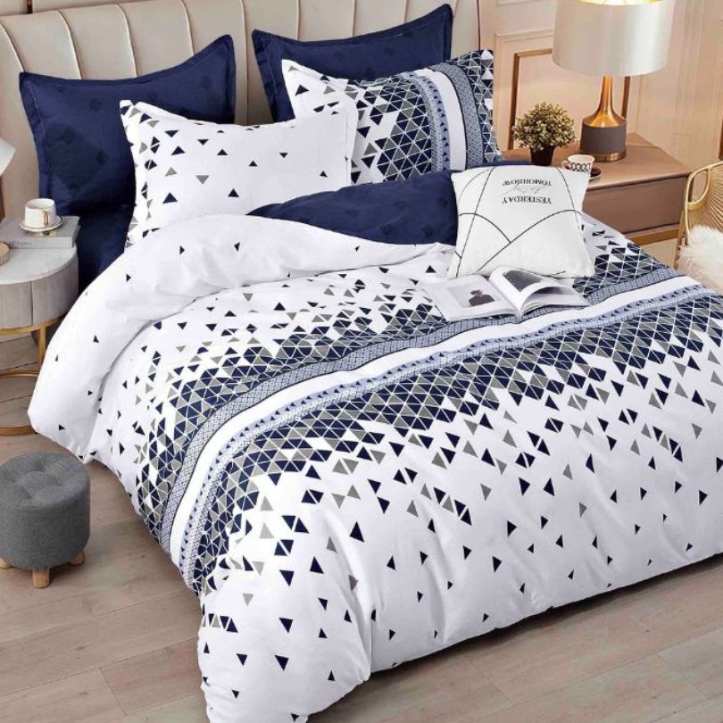 Setul de lenjerie din bumbac finet fără elastic include: cearceaf plat, cearceaf pentru pilota, două fețe de pernă și două fețe pentru pilotă, oferind o soluție completă pentru patul tău, fără închiderea cu elastic.